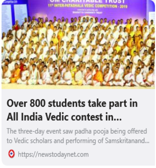 The Trust has been formed to encourage the fields of education having Indian heritage value. At present, the students learning the scriptures of yore are helped in sharpening their skills by conducting inter-school competitions wherein all states of India participate. More than 178 Vedic and Sanskrit institutions have been empanelled with us. The aim of the competition is to encourage congeniality, confidence and zeal in the minds of blooming boys of Vedic learning.